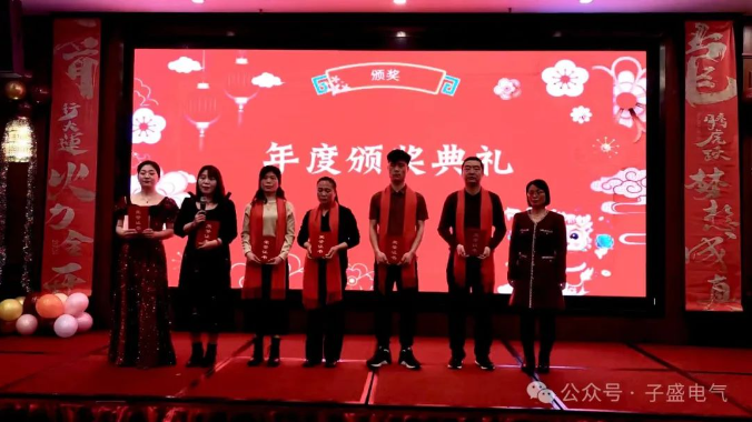 颁奖环节是年会的高潮之一,现场庄重而肃穆。获奖者们脸上洋溢着期待与激动的表情,观众们也屏息以待,期待着荣誉的归属。有针对个人优秀表现的奖项,也有表彰团队卓越成就的奖项。每一个奖项背后,都代表着公司对员工们辛勤付出的认可与嘉奖。伴随着颁奖音乐的响起,获奖者们逐一登台,接过属于他们的荣誉。获奖者们发表感言,分享他们的成功经验与心得体会。他们的故事激励着在场的每一个人,让人们坚信只要努力付出,终将收获成功。颁奖环节不仅是对获奖者们的肯定与嘉奖,更是对所有员工努力与拼搏的鼓舞与激励。它传递着子盛电气的价值观,激发着员工们的积极性和创造力,使整个团队更加凝聚与奋进。